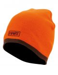 Megzta dvipusė kepuraitė: oranžinė ir ruda spalvos.